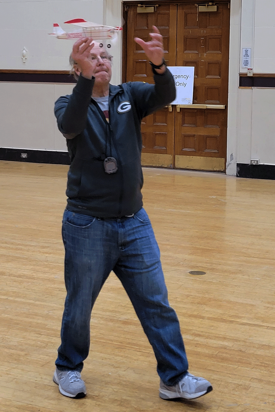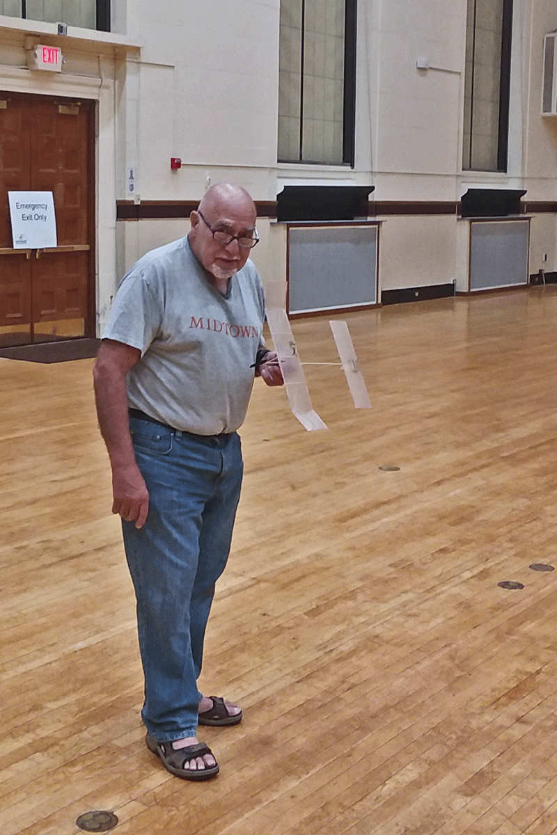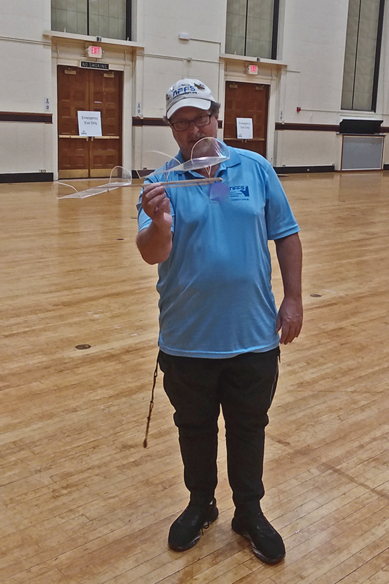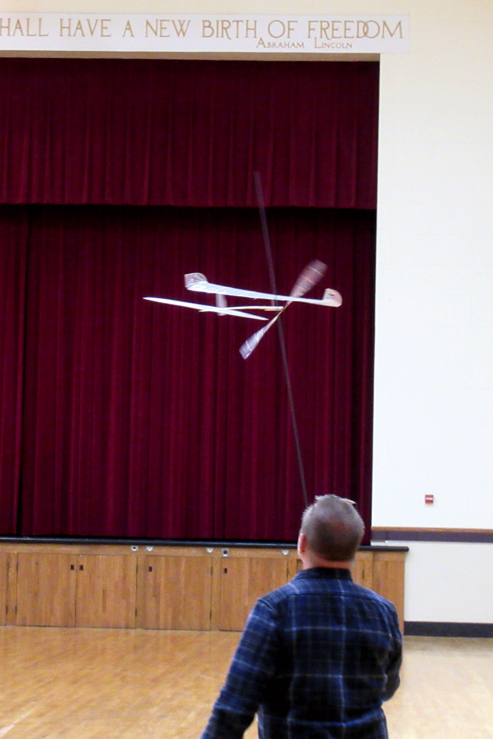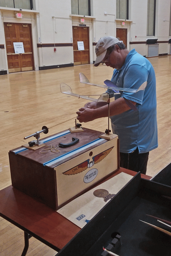 Dave Winding his Limited Penny PlaneDave Launching his Penny PlaneChuck testing his Science Olympiad Capacitor electric PlaneJeff winding his Lacy Peanut