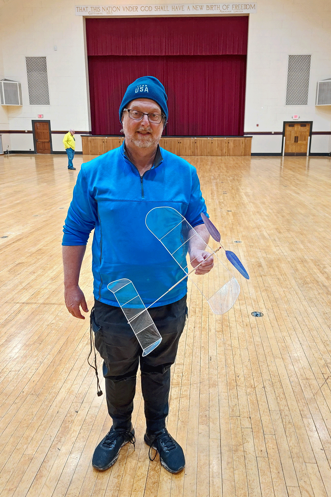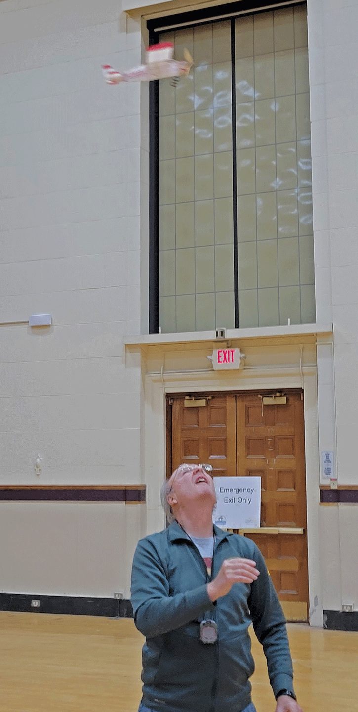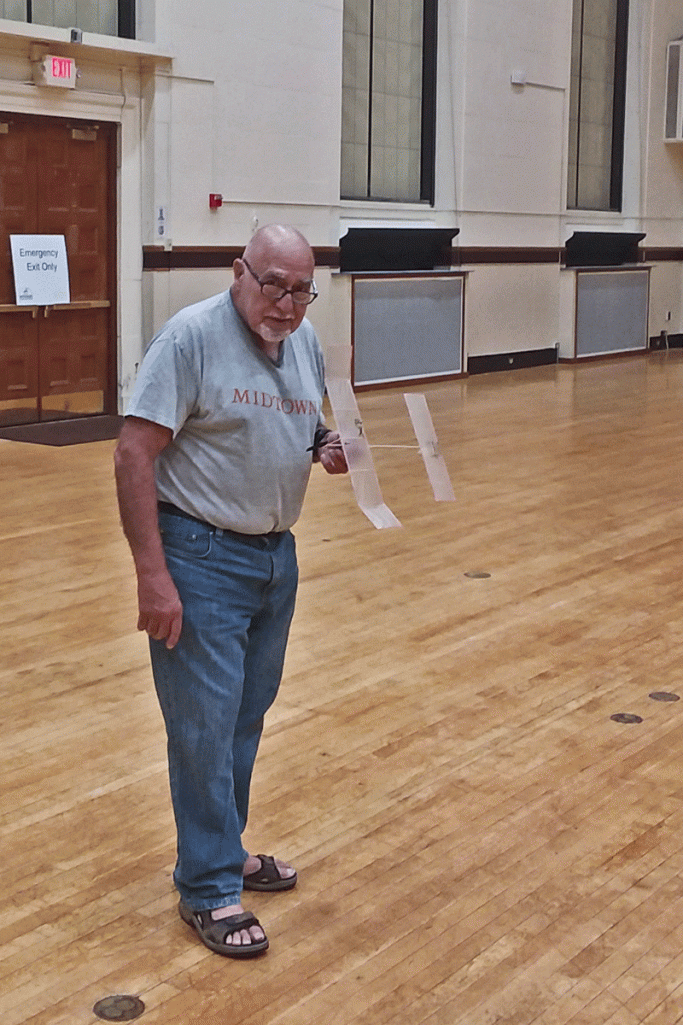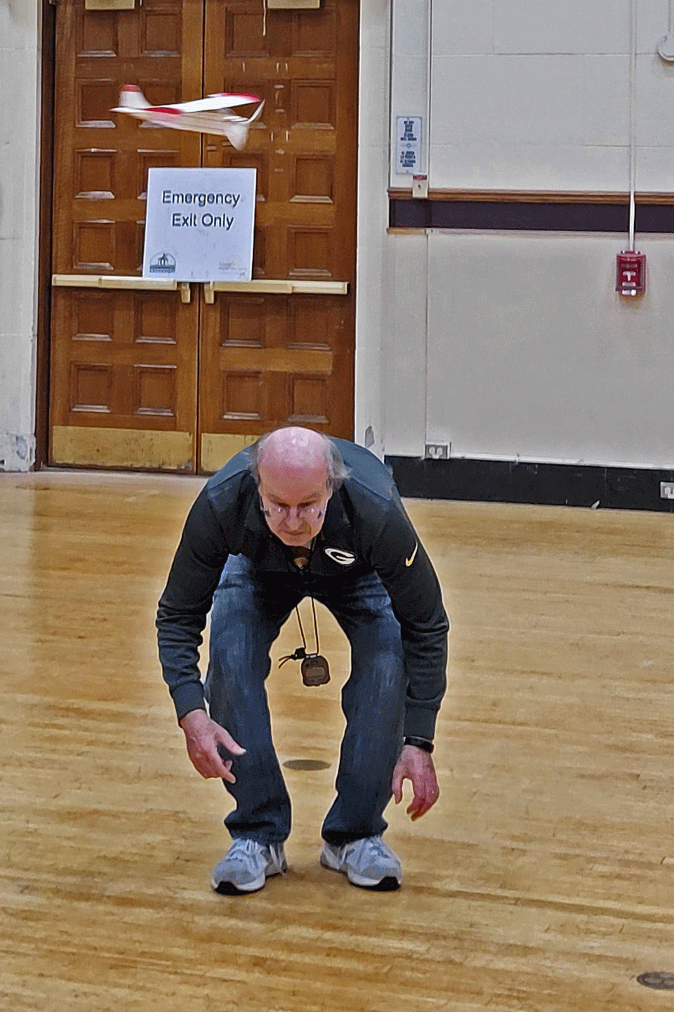 Dave Winding his Limited Penny PlaneDave Launching his Penny PlaneChuck testing his Science Olympiad Capacitor electric PlaneJeff winding his Lacy Peanut