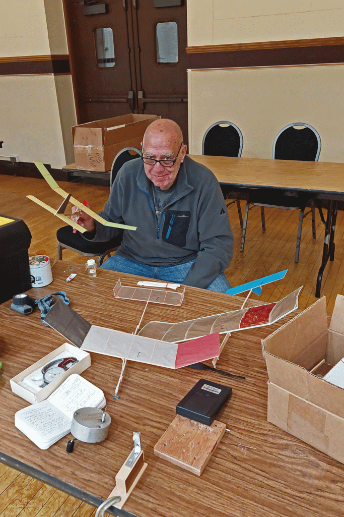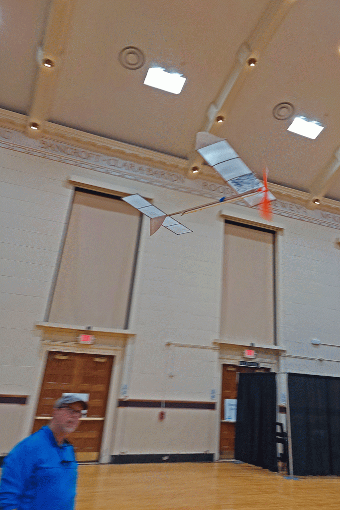 Jeff A.’s F1L / EZ B plane (flights lasting 5 minutes!)Joe B.’s “Mai” 35 cm ws planeJoe B’s Big Smash P-18 Plane2023 Science Olympiad Plane on Test FlightJoe B’s TurboStallion NoCal (Volare Kit)Joe B. with nicely detailed No-CalJoe B. winds P-18 Stick ModelJeff A.’s F1L finds Height