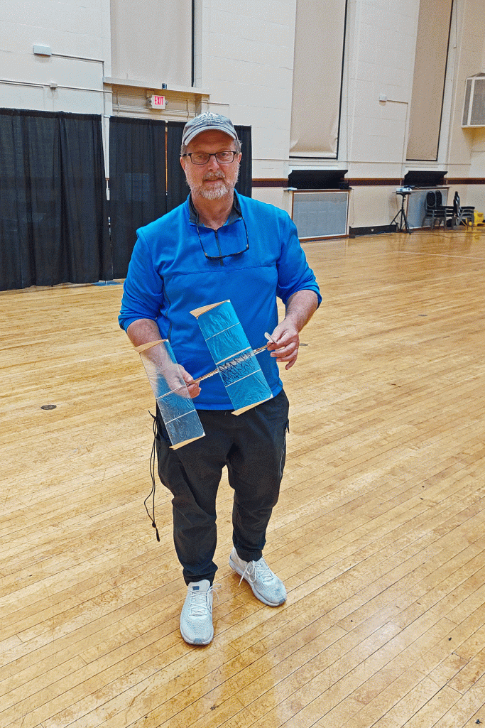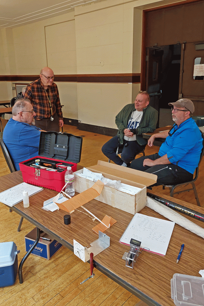 2 members were flying, and 2 more were visiting. There were 2 high school students performing test flights on the Science Olympiad Wright Stuff senior class planes built to 2023 rules. Photos by Jeff A. and Joe B.