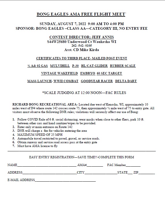 2025 Bong Eagles Old Timer Free Flight Meet – July 13