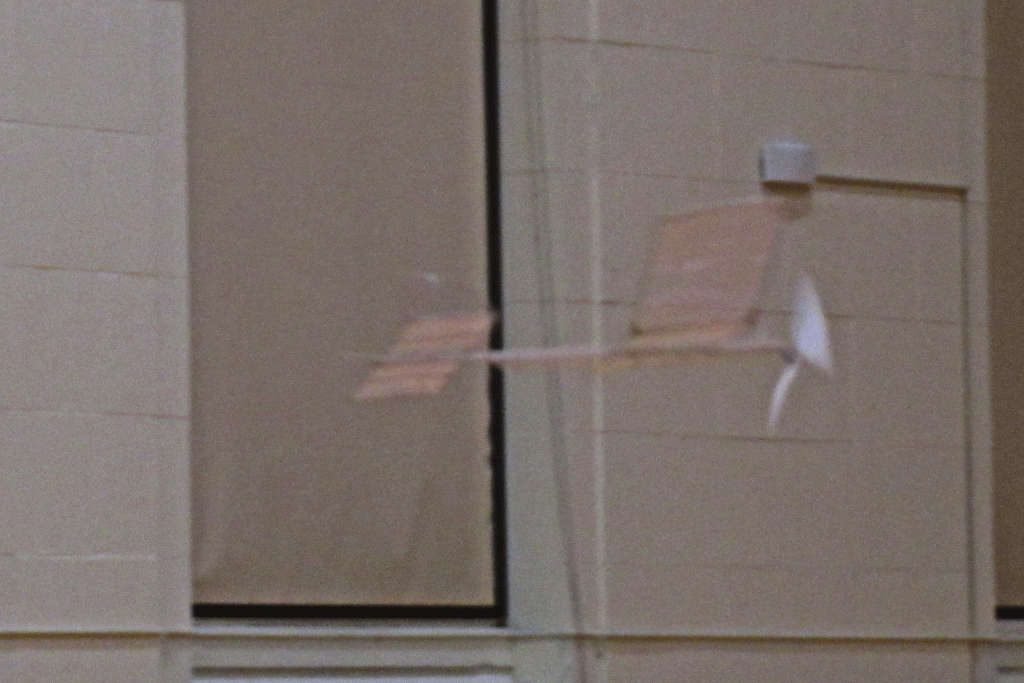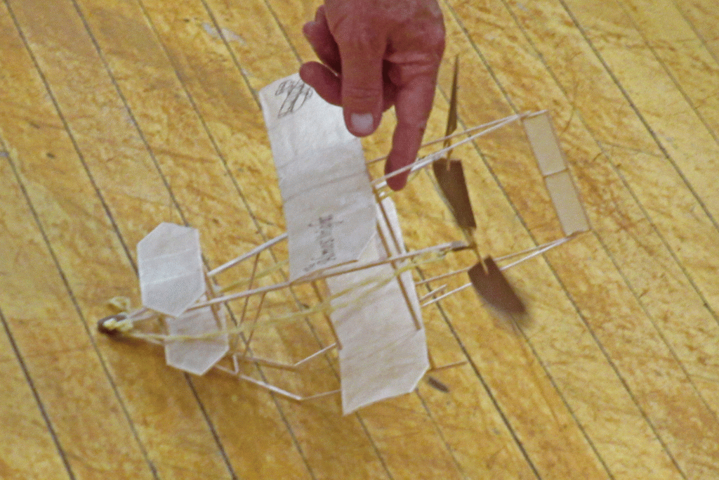 There were three Bong Eagles flying at Racine on March 6. Jeff A. was flying his planes for F1L and A6 competition. He also got his “Stringless Wonder” to fly well (64 seconds). This flying Kite from Bill Hannan plans was a one design contender at the EAA Flight Fest. Chuck M. had great flights with an impressive Limited Penny Plane. He also coached the Science Olympiad fliers. Joe B. brought his new Jetco R.O.G. model and a new Stringless Wonder. He was able to get the trimming process started. There were also a number of Science Olympiad flyers from 3 Wisconsin schools. They successfully tuned up their models. Jeff A. and Joe B. contributed photos.