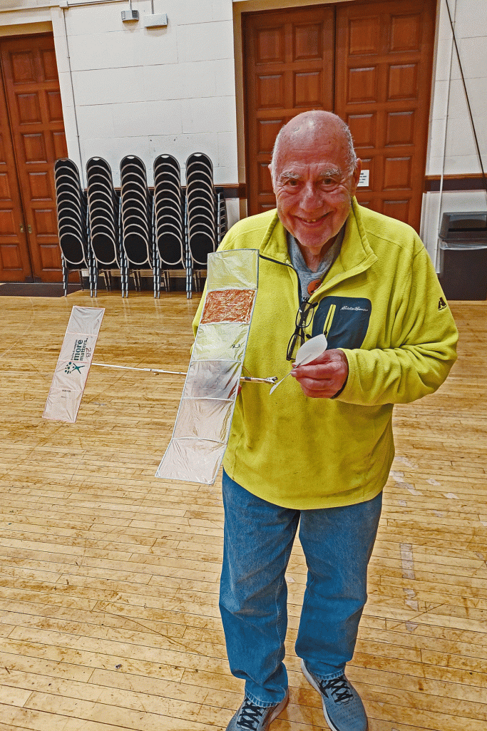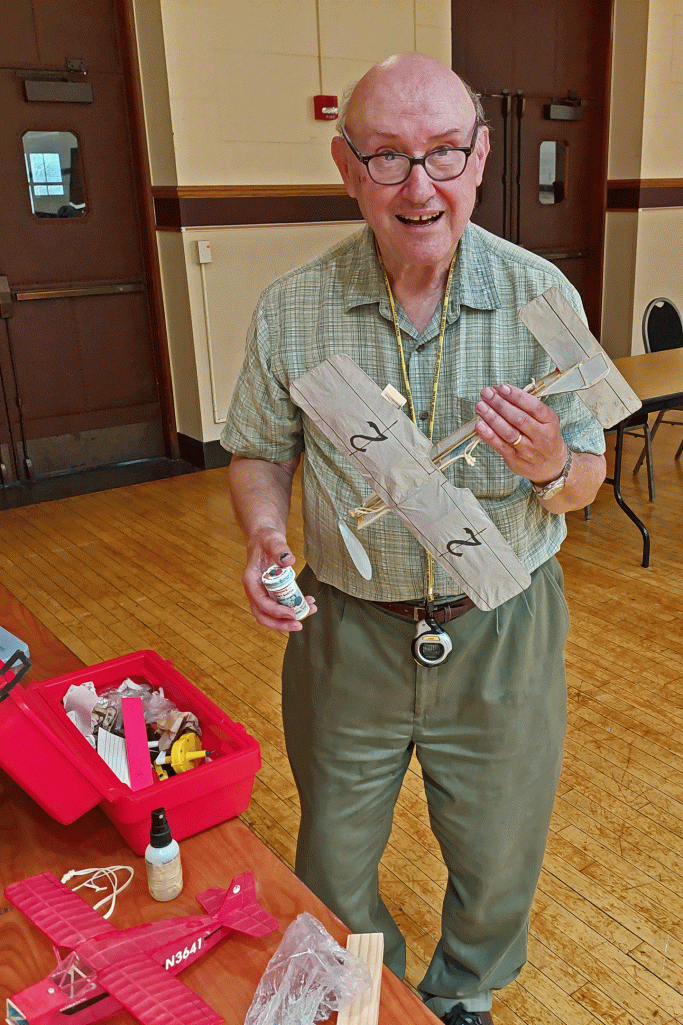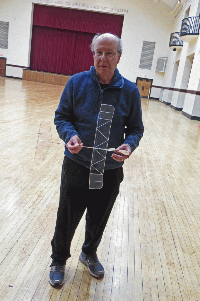 There were two Bong Eagles flying at Racine on February 7. Jeff A. was trying out his new Dime Scale B.A.T. (British Aerial Torpedo – manned version) that he built from a Volare Products Short Kit. Volare has documentation for this rare experimental WWI Monoplane (https://volareproducts.com/blog/?page_id=3524/). He also got his “Stringless Wonder” to fly well. This flying Kite from Bill Hannan plans will be a one design contender at the EAA Flight Fest. Joe B. had best results with his simple R.O.G. model. There were also 2 groups of Science Olympiad flyers from Wisconsin high schools, one of novices and the other quite advanced. They successfully tuned up their models. Mike K. and Jim G. came out to also aid the students and their coaches.