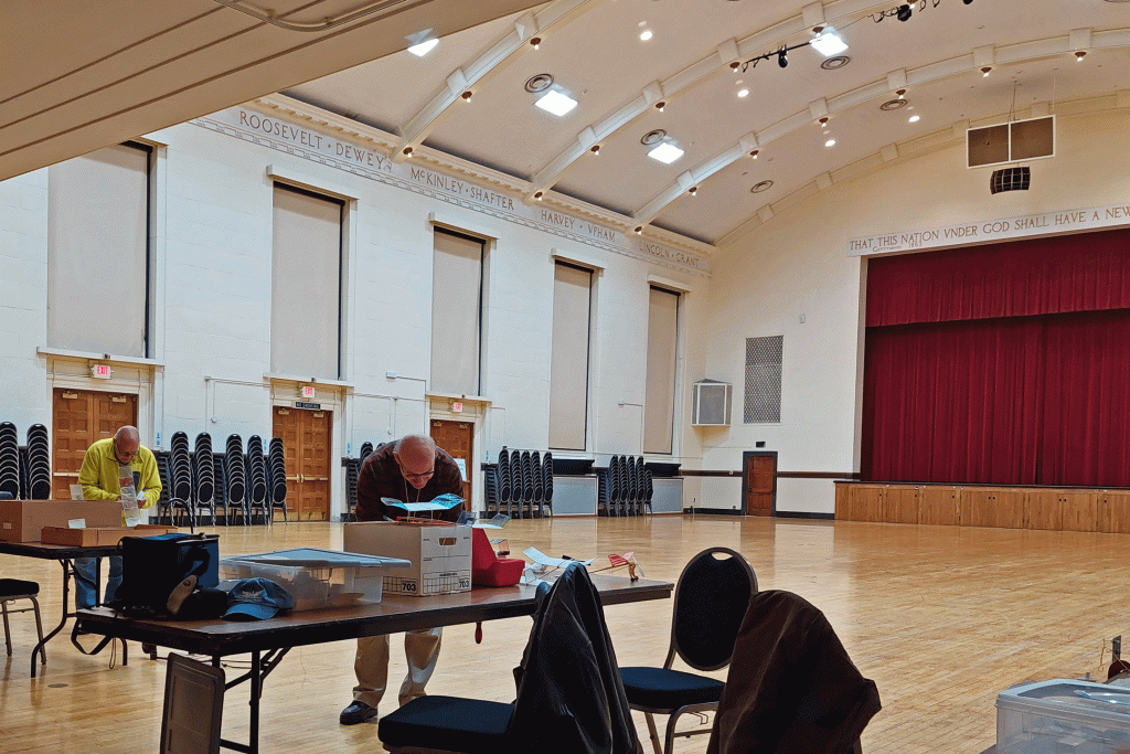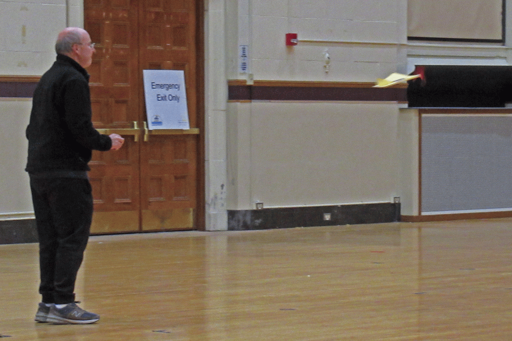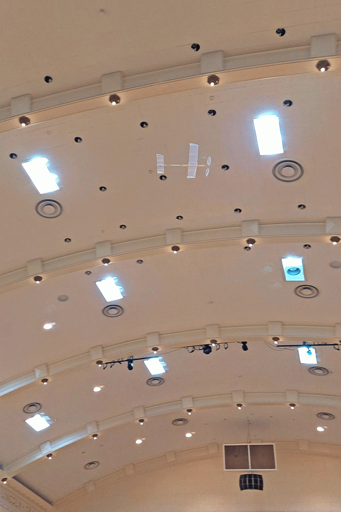 Memorial Hall’s beautiful flying space, with Joe and Chuck busy getting models ready