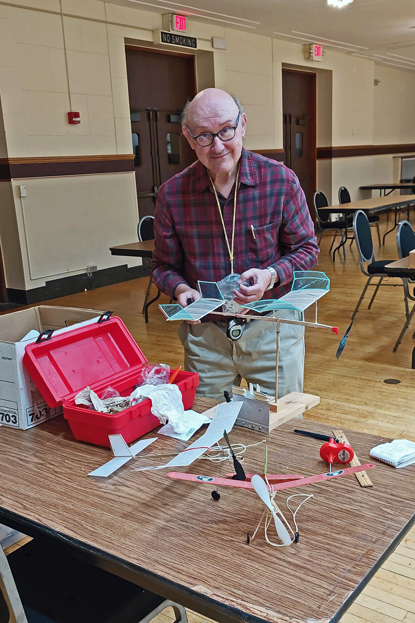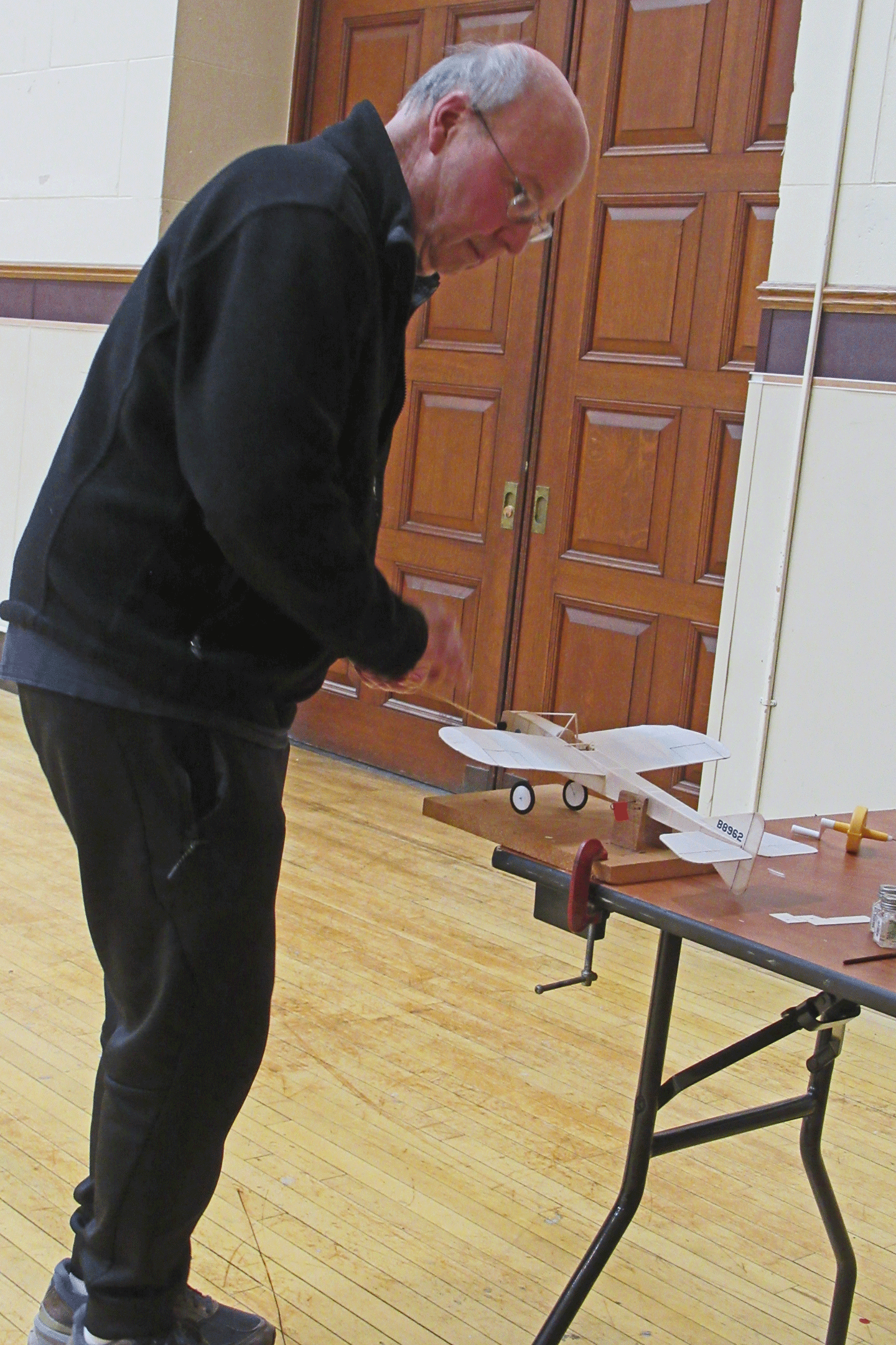 There were two Bong Eagles flying at Racine on February 7. Jeff A. was trying out his new Dime Scale B.A.T. (British Aerial Torpedo – manned version) that he built from a Volare Products Short Kit. Volare has documentation for this rare experimental WWI Monoplane (https://volareproducts.com/blog/?page_id=3524/). He also got his “Stringless Wonder” to fly well. This flying Kite from Bill Hannan plans will be a one design contender at the EAA Flight Fest. Joe B. had best results with his simple R.O.G. model. There were also 2 groups of Science Olympiad flyers from Wisconsin high schools, one of novices and the other quite advanced. They successfully tuned up their models. Mike K. and Jim G. came out to also aid the students and their coaches.