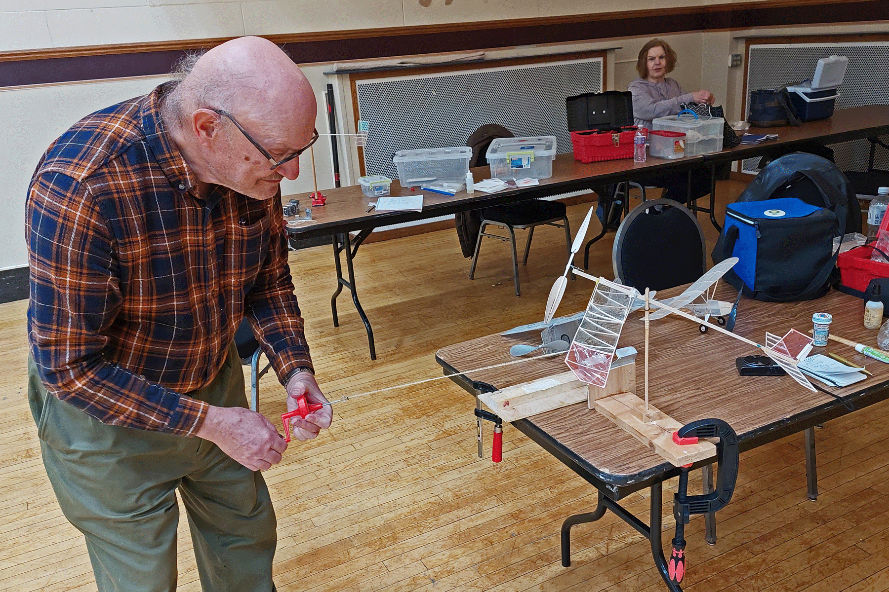 Memorial Hall’s beautiful flying space, with Joe and Chuck busy getting models ready