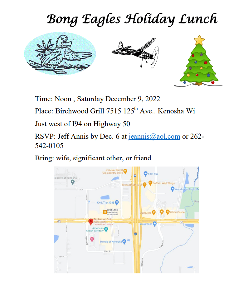 2023 Bong Eagles Holiday Lunch Flyer The Bong Eagles Holiday Lunch was a success this year. A good time was had by the 12 folks who attended. EVENT FLYER 2023 Bong Eagles Holiday LunchDownload Share this: Click to share on X (Opens in new window) X Click to share on Facebook (Opens in new window) Facebook Like Loading...