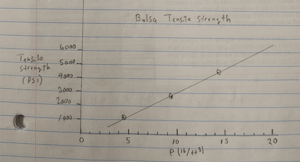 Attached is a printout of the spreadsheet program which was used for the Go Devil Embryo model along with a balsa strength graph in PSI versus wood density. If anyone is interested in getting a copy of the program just drop me an Email and would be glad to walk you thru the use of it. Also attached is a photo of the wing construction with the spar design.
