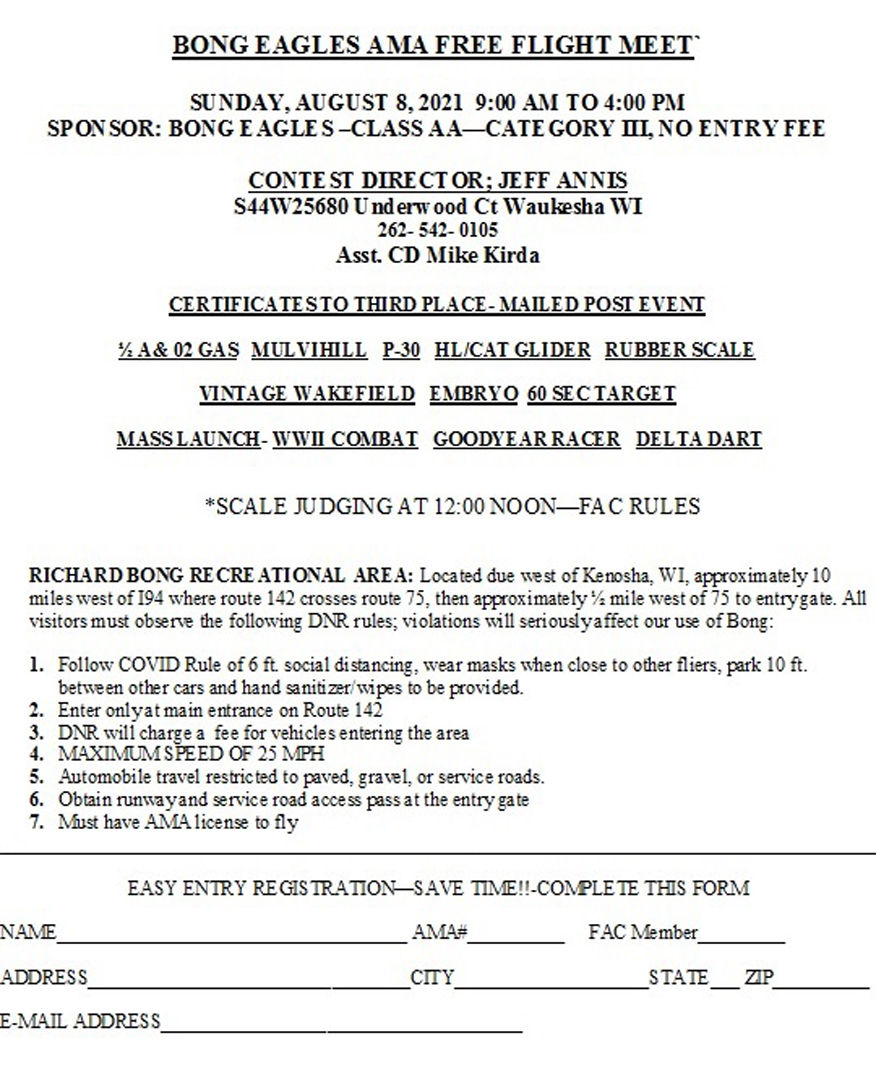 Flyer – August 8, 2021 All Free Flight Contest BONG EAGLES_AMA_Flyer_8_08Download Share this: Click to share on X (Opens in new window) X Click to share on Facebook (Opens in new window) Facebook Like Loading...