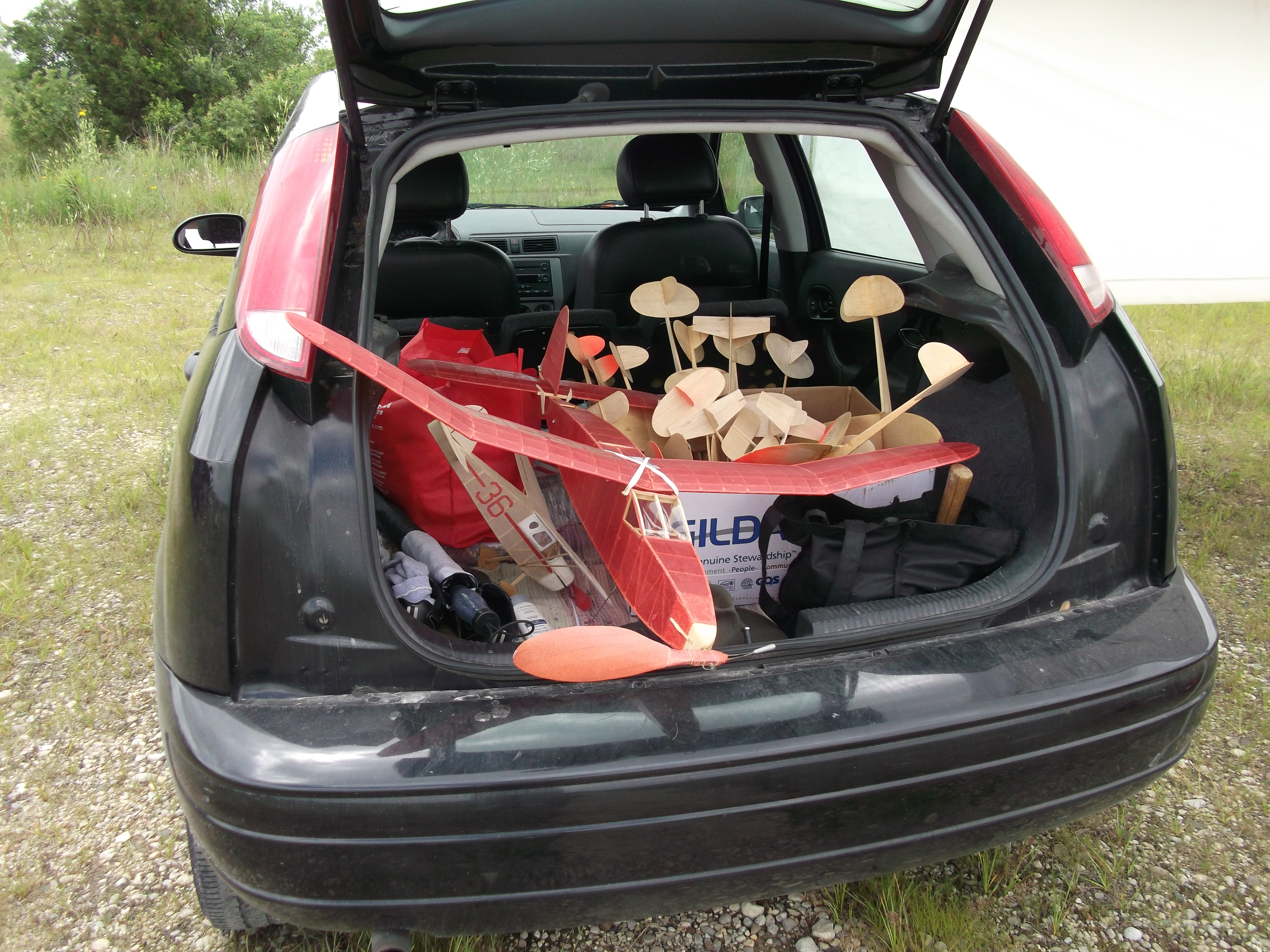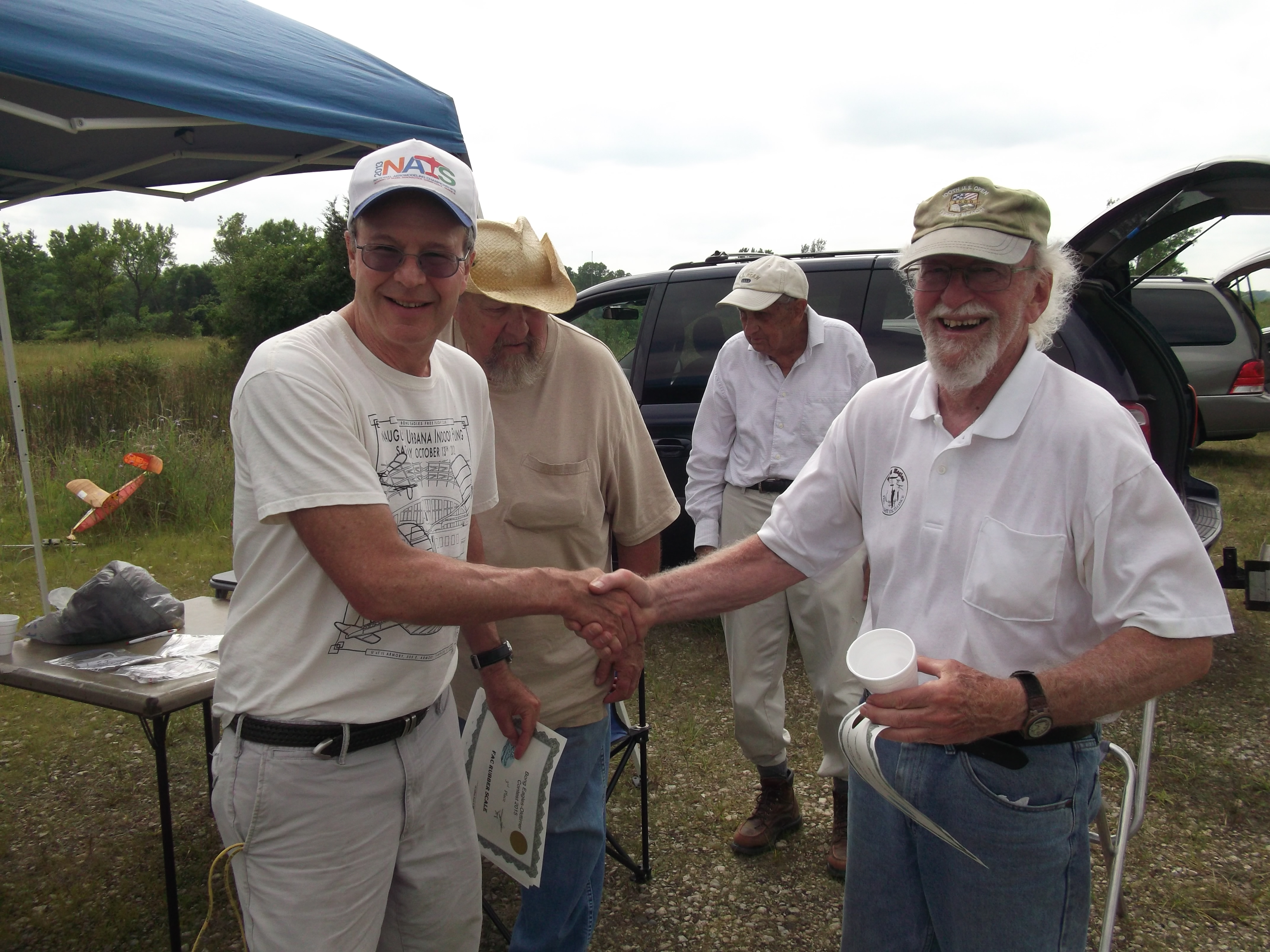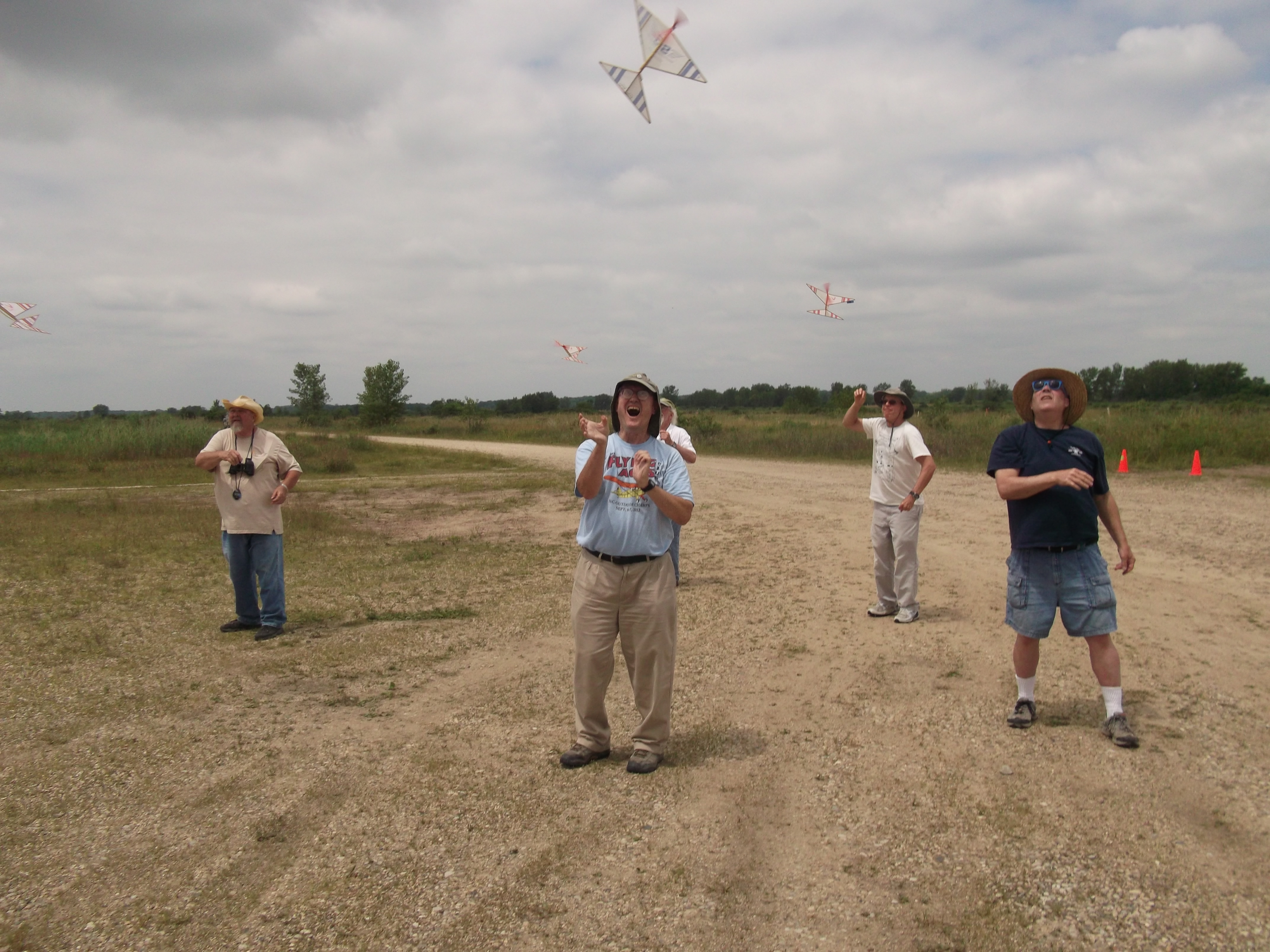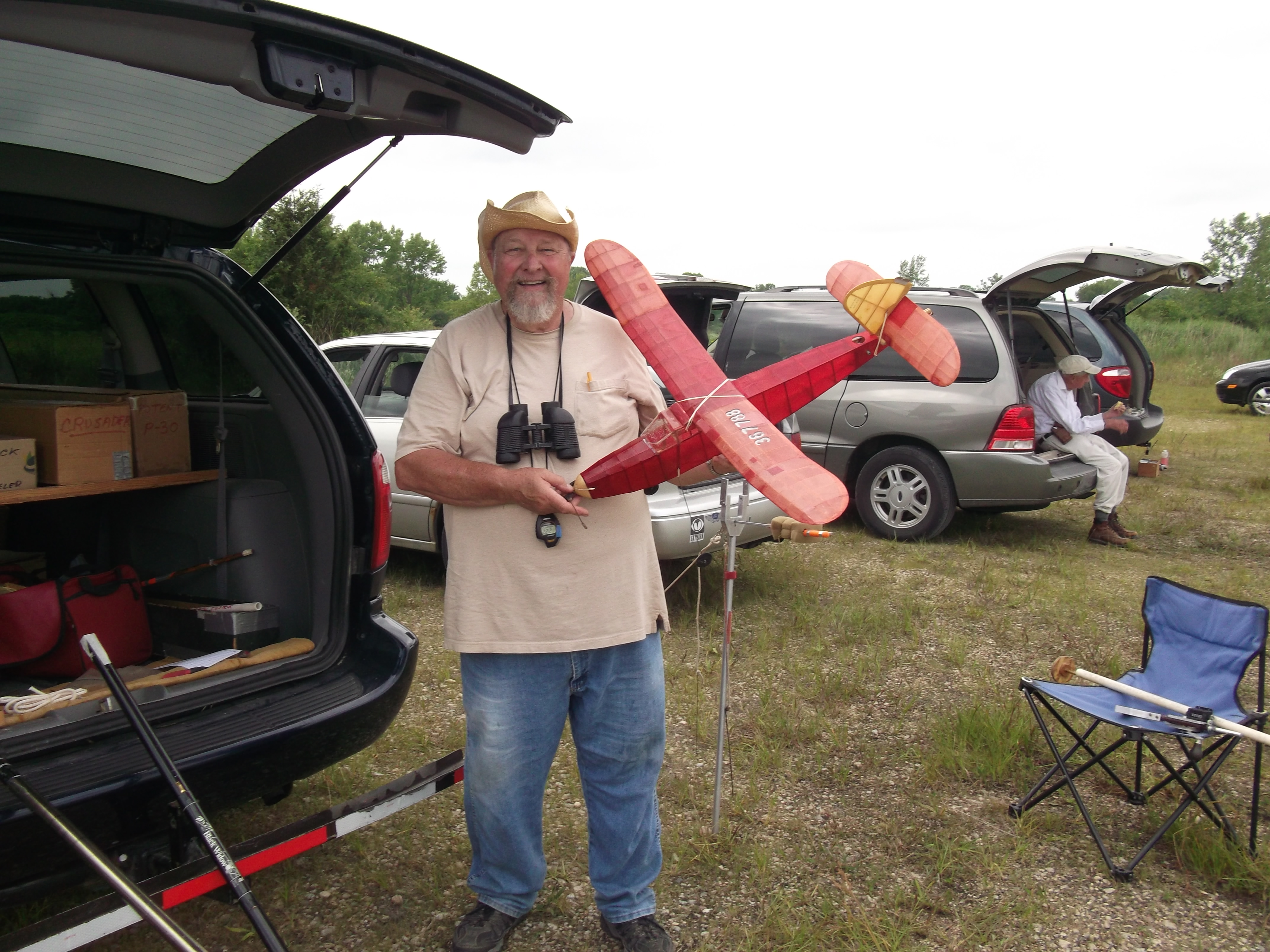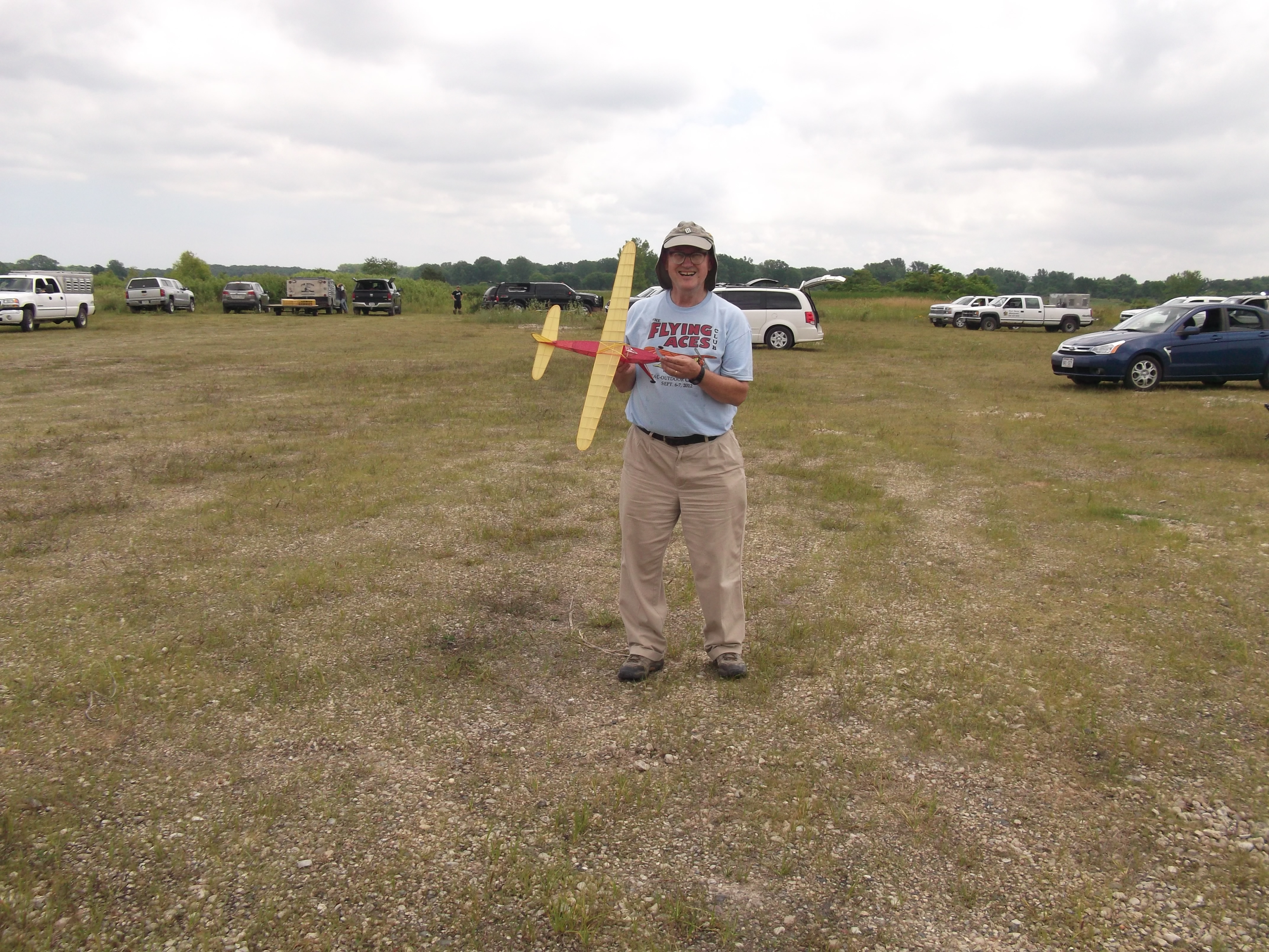 Bob Warmann in the foreground resting after winning Cat. Glider with a 3 1/2 minute flight.